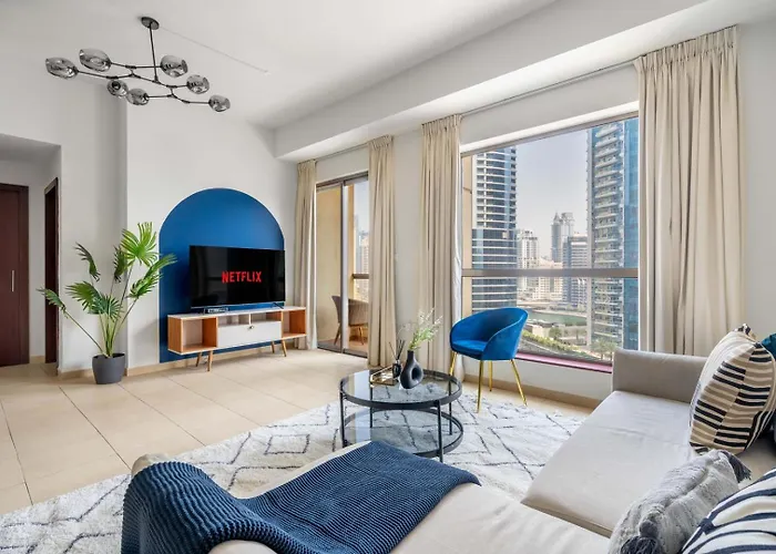 Oferecendo piscina ao ar livre, apartamento Guestready - Luxurious Marina View Residence está localizado a 3.4 km de Cidade Multimédia Dubai. A estação de metrô de DAMAC Properties fica a 10 minutos a pé e parragem de autocarro Big 21 bayside fica a 10 minutos a pé.